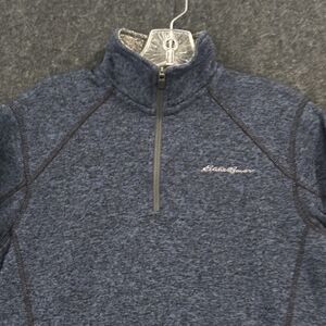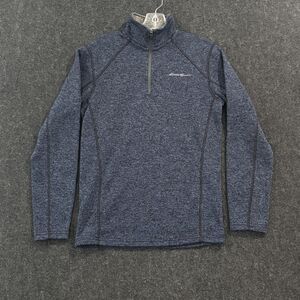 Eddie Bauer Sweater Men's Small Navy Blue Quarter 1/4 Zip Fleece Knit Pullover
