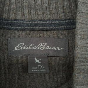 Eddie Bauer Sweater Mens XL Tall Brown Oatmeal 1/2 Zip Heritage Dadcore