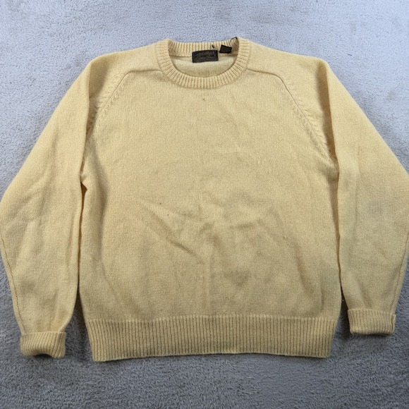 Eddie Bauer Sweater Mens XL Yellow 100% Shetland Wool Knit Crewneck Pullover