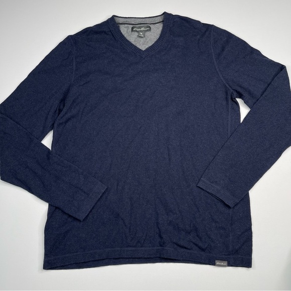 Eddie Bauer Sweater V Neck Cotton Wool Blend Navy Blue Outdoor Gorp Coastal Fall Autumn Winter Warm Comfy Office Work