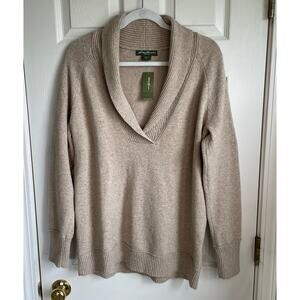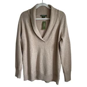 Eddie Bauer Sweater NWT Shawl Collar Sz XL Cotton Wool Blend Tan Neutral Casual