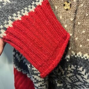 Eddie Bauer Sweater Taupe Red Wool Alpaca Nordic Button Cardigan Fuzzy Cozy 4X