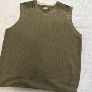 Eddie Bauer Sweater Vest Men's L Green Outdoor Sport Shop Pullover 100% Cotton