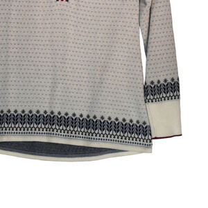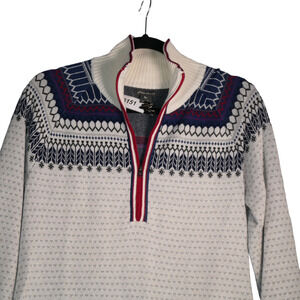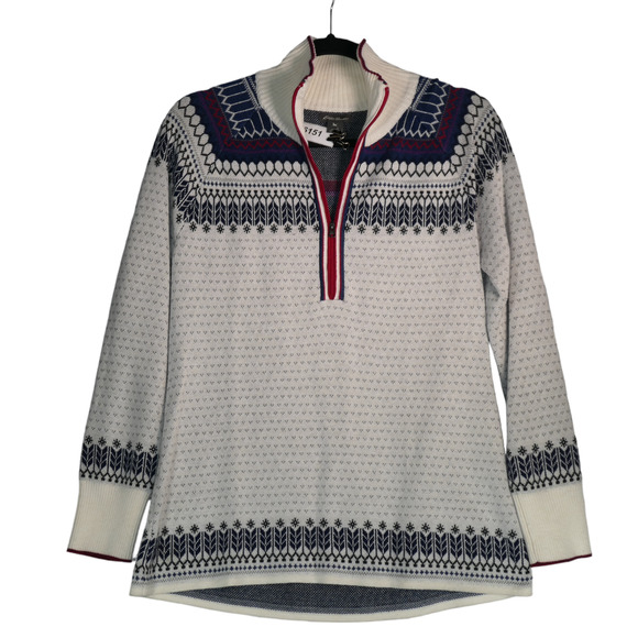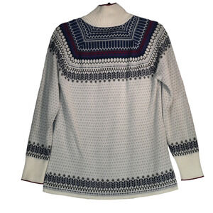 Eddie Bauer Sweater Women Large Ivory Blue Fair Isle 1/2 Zip Ski Holiday Party