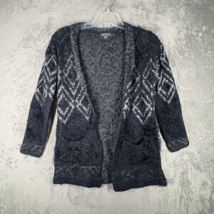Eddie Bauer Sweater Women Small Gray Geometric Open Cardigan Neutral Minimalist