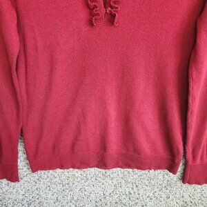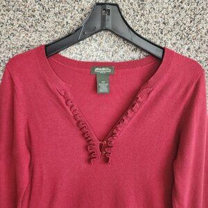 Eddie Bauer Sweater Womens Medium Burgundy Long Sleeve V Neck Ruffle