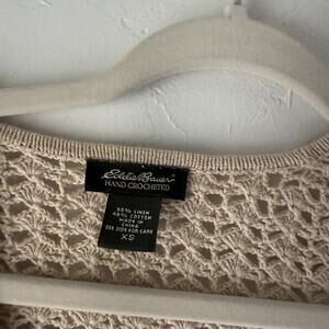 Eddie Bauer Sweater Womens XS Beige Hand Crocheted Linen Cotton Cardigan Boho Knit