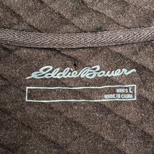 Eddie Bauer Sweatshirt Men's L Quilted 1/4 Snap Brown Kangaroo Pocket Cotton