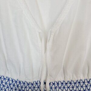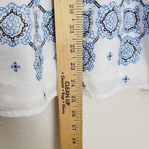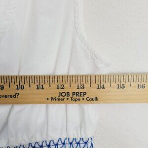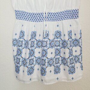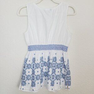 Eddie Bauer Sz Med Sleeveless Peplum Blouse White Blue Cotton Dutch Chinoiserie