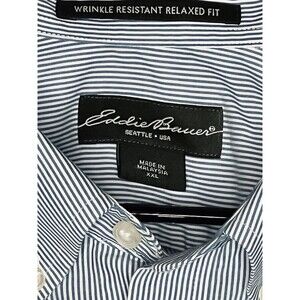 Eddie Bauer Sz XXL Wrinkle Free Relaxed Fit Long Sleeve Shirt Blue White Striped