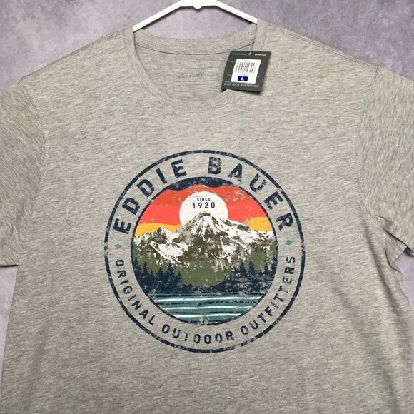 Eddie Bauer T Shirt Adult size Large Gray Short Sleeve Mens Mountain Tee NEW