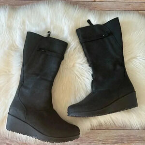 Eddie Bauer Tall Black Leather Boots Wedges Sz 10