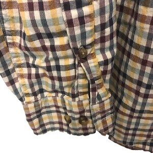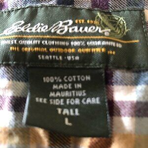 Eddie Bauer Casual Button Down Long Sleeve Plaid Fall Colors 100% Cotton Size Large Tall