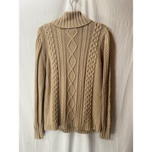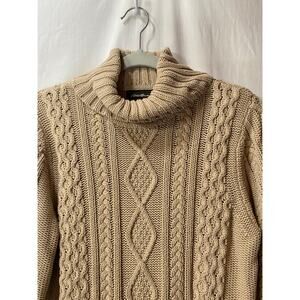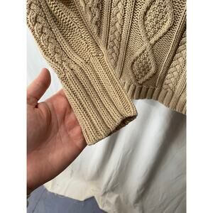 Eddie Bauer Tan Vintage Cable Knit Fisherman Core Cowl Neck Sweater 60% Cotton 40% Acrylic