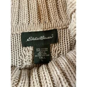Eddie Bauer Tan Cable Knit Fisherman Core Cowl Neck Sweater Cotton Blend L Tall