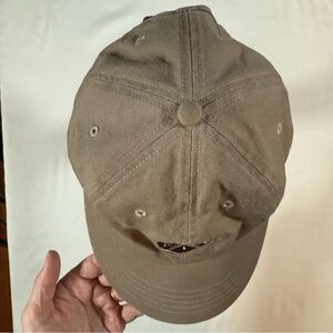 Stylish tan hat with bold shield logo. Perfect for outdoor adventures.