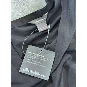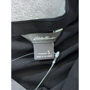 Eddie Bauer Women's Small Black V-neck blouse is a stylish tank top made from a comfortable blend of Polyester and Spandex, perfect for casual or dressy occasions.