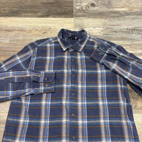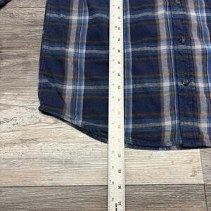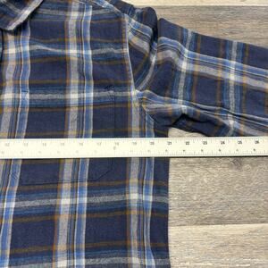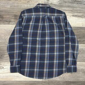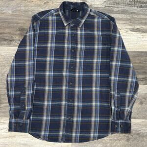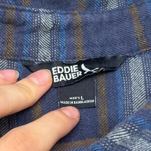 Eddie Bauer Tartan Plaid Blue Mens L Flannel Button Up Retro Outdoor Camp Shirt