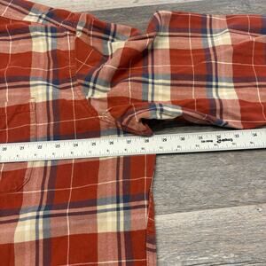 Eddie Bauer Tartan Plaid Orange Blue Cream Mens 2XL Relaxed Fit Chest Pocket Button Down Flannel Shirt