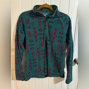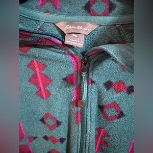 Eddie Bauer Teal and Pink Southwestern Navajo Print Fleece 1/2 Zip