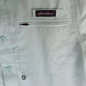 Eddie Bauer Tech Woven Shirt Mens Medium Teal Blue Short Sleeve Fishing Vented