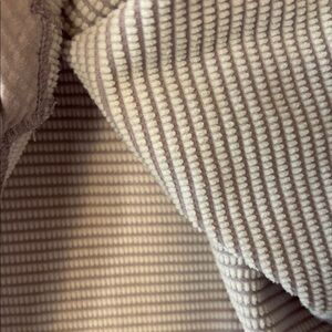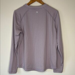 Stylish light lavender long sleeve top with subtle stripes. Perfect for casual wear. Soft and comfortable fabric. Measures 20.5” underarm to underarm; 26” in length.