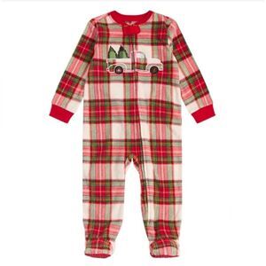 Eddie Bauer Toddler 18M Footed Sleeper Red Plaid Zip Pajamas Christmas Truck NWT