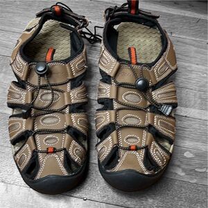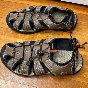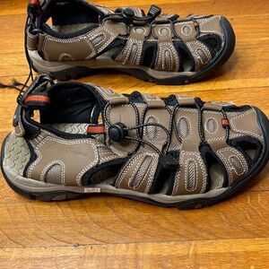Eddie Bauer Tommy Leather Sandals Mens 9 Bump Toe Water Hiking Brown Nwot