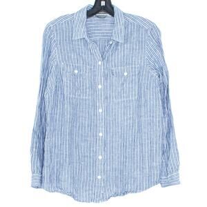 Eddie Bauer Top Preppy Nautical Minimalist Button Stripe Classic Fit Blue Medium