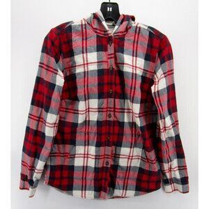 Eddie Bauer Top Small Flannel Sweatshirt Plaid Hoodie Button Down