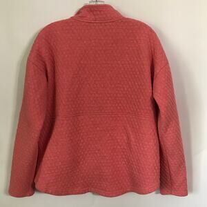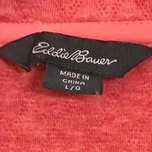 Nice Eddie Bauer sweatshirt top. Long sleeves with zipper front. Hand warmer pockets on front. Quilted like texture for cozy wear. Medium weight fabric. Salmon color. Size Large. Minimal wash wear. Very good condition.