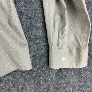 Eddie Bauer Top Womens Large Wrinkle Free Shaped Fit Button Up Gray Polka Dot