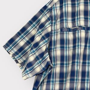 Eddie Bauer Travex Button Down Shirt Men 2XL Blue Plaid Short Sleeve Pockets