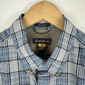 Eddie Bauer Travex Button Down Shirt Men's M Plaid Long Sleeve Blue White