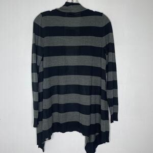 Eddie Bauer Travex Cardigan Sweater M Black Gray Stripe Wool Blend Open NEW