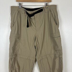 Eddie Bauer Travex Convertible Pants Mens XL x 34 Beige Belted Nylon Hiking