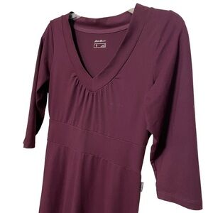 Eddie Bauer Travex Dress Purple Knit Flare V Neck 3/4 Sleeve Size S