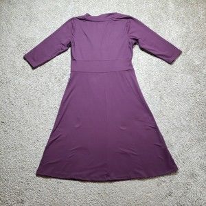Eddie Bauer Travex Dress Womens Small Petite Purple Plum 3/4 Sleeve High Waist
