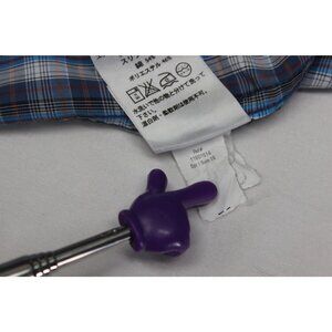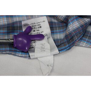 Pre-owned item with signs of use/wear: small spot of blemish in print, a small pulled thread on pocket.
