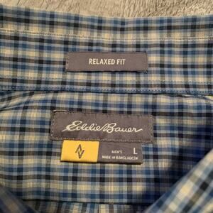 Eddie Bauer Travex Shirt Mens Large Relaxed Fit Blue Plaid Button Up Long Sleeve