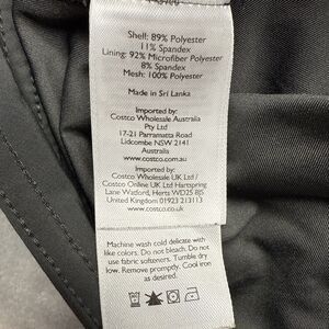 Material: Shell: 89% polyester, 11% spandex; Lining: 92% polyester, 8% spandex; Mesh: 100% polyester