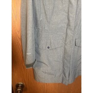 Stay protected from the elements in style with the Eddie Bauer Travex WeatherEdge Rain Jacket for women in size L. Made with durable polyester material, this long coat features a solid olive green color with a waterproof design, perfect for travel, casual wear, or work. The jacket includes a hood, full zip closure, and convenient pockets for added functionality. The cozy polyester lining and insulation ensure warmth during the winter, fall, and spring seasons. With the Eddie Bauer logo accents and a regular fit, this rain coat combines practicality with a touch of outdoor flair.