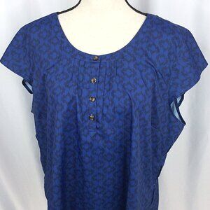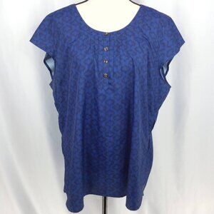 Eddie Bauer Travex Women's Top Size 2XL Blue Henley Cap Sleeve Vented Travel
