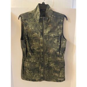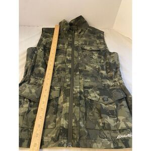 Eddie Bauer Travex Atlas 2.0 Utility vest Camouflage small. measures 19" chest, 25" long. interior zipper pocket. 96 nylon. spandex. bungie waist. excellent.