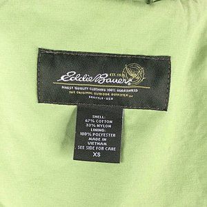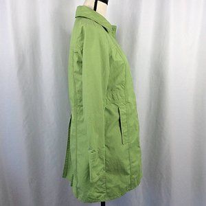Eddie Bauer Trench Coat Womens Size XS Green Cotton Nylon Blend Mid Length