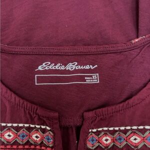 Eddie Bauer Embroidered Cotton Cap Sleeve T-shirt Boho Maroon Wine XS