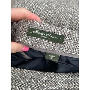 Eddie Bauer Tweed Skirt Women's 14 Tan Gray Wool Blend Lined, Outdoor