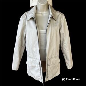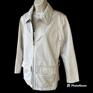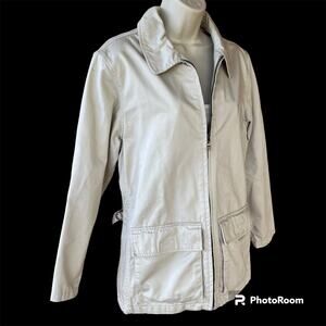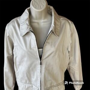 Eddie Bauer Utility Chore Coat Jacket Front Zip Pockets 100% Cotton Stone Mens S
