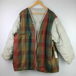 Eddie Bauer VTG Men's SZ L Cotton Tan Chore Jacket Corduroy Collar Down Plaid Inner button-in liner.