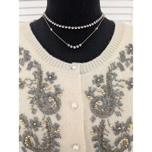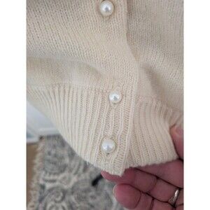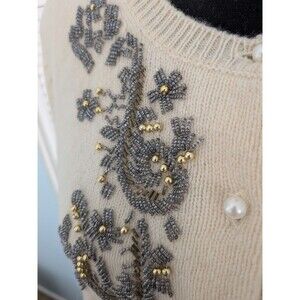 Eddie Bauer VTG Sweater Womens XL Wool Silk Lined Cream Pearls Beaded Cardigan